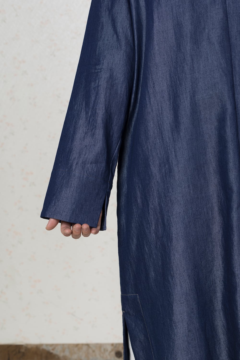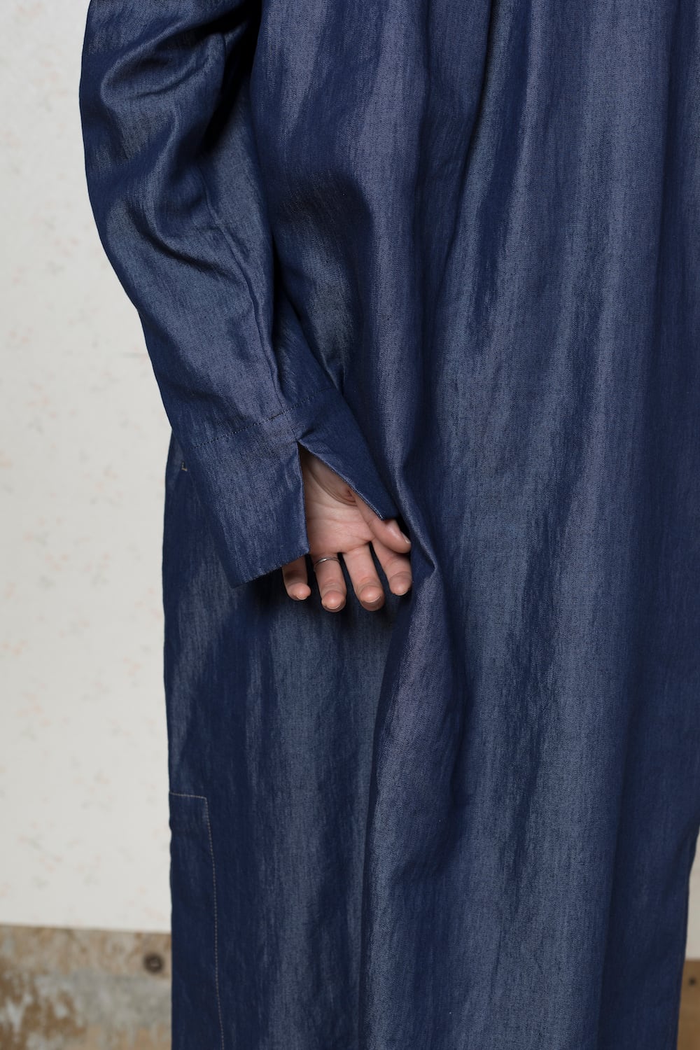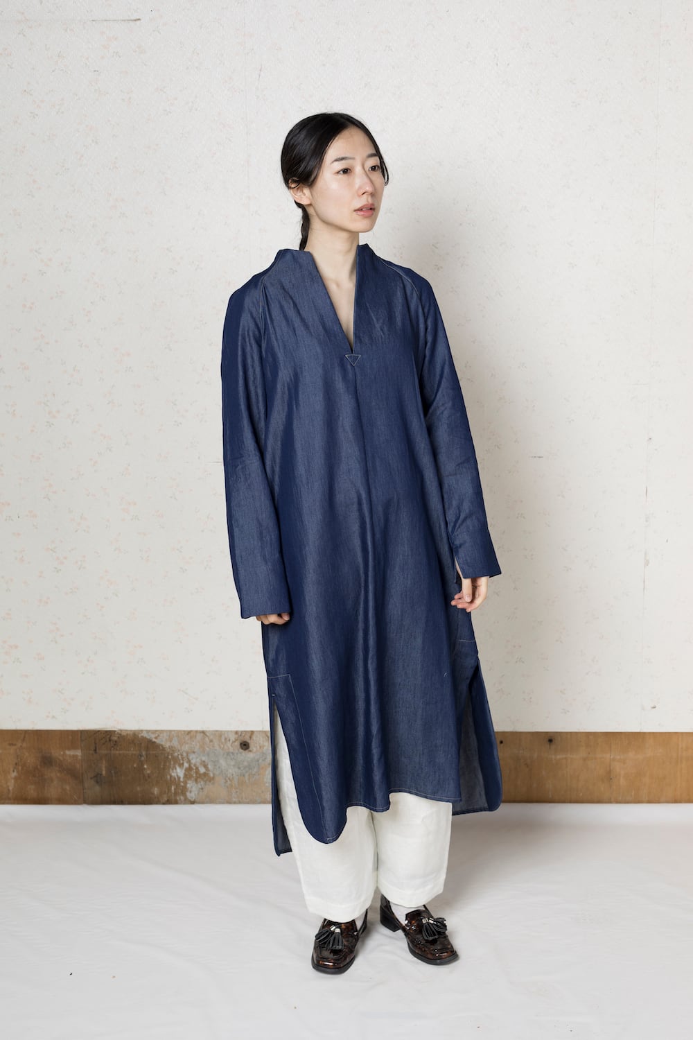 インディゴスタンドカラードレス|Silky indigo robe