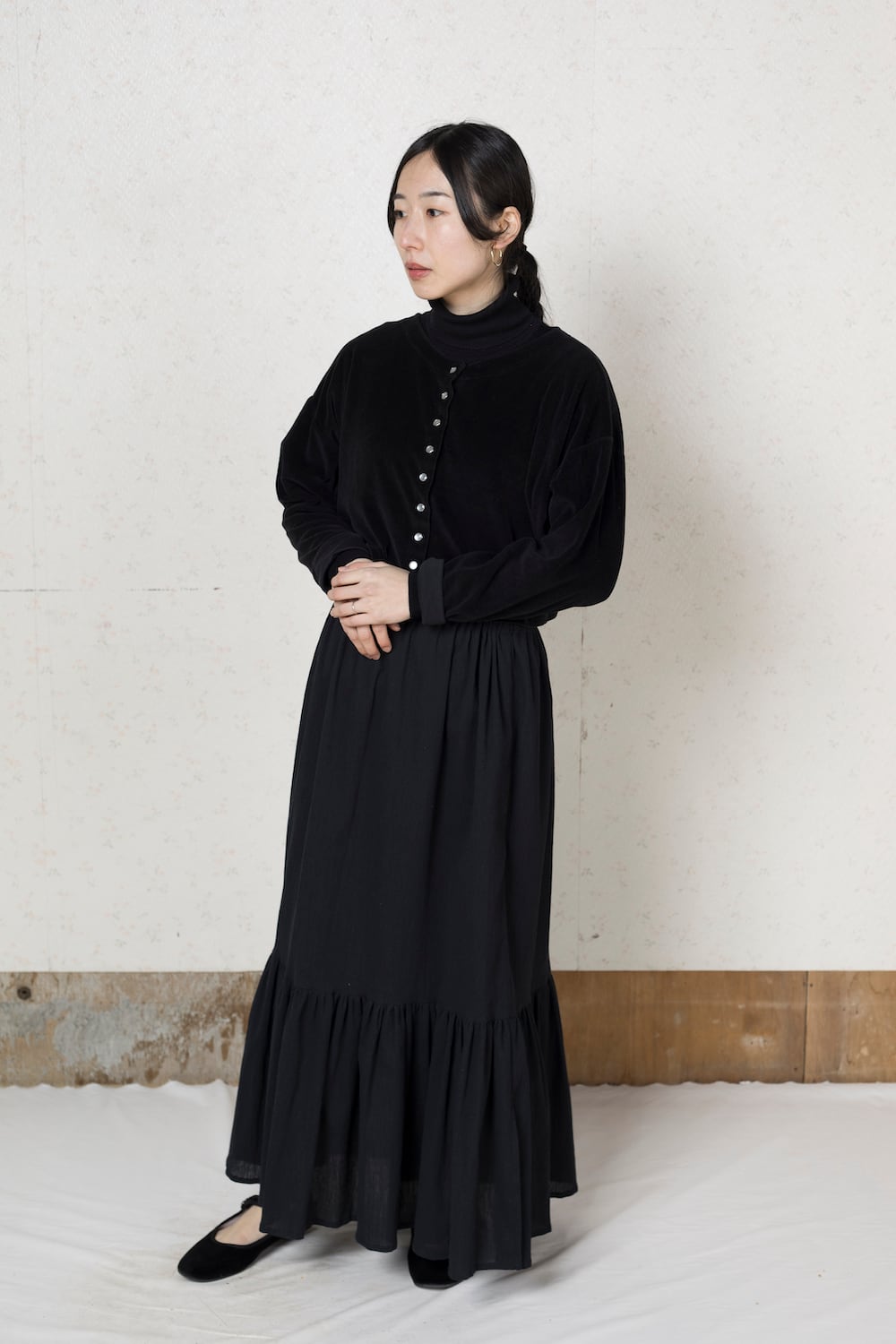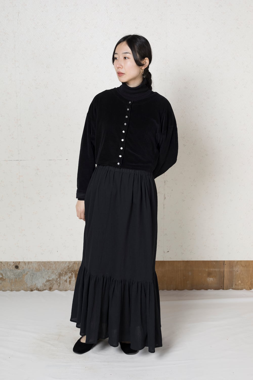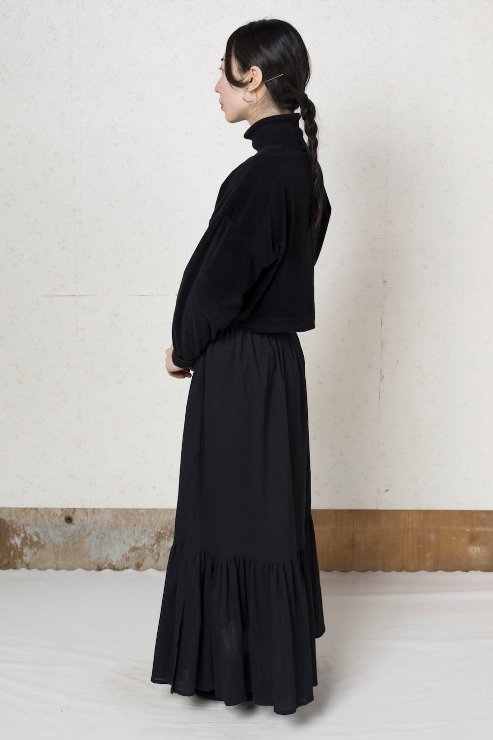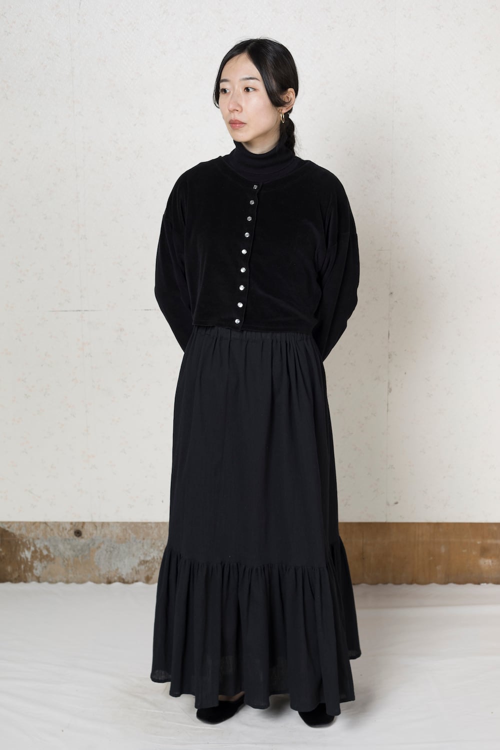 フリルマキシスカート|Black frilled maxi skirt