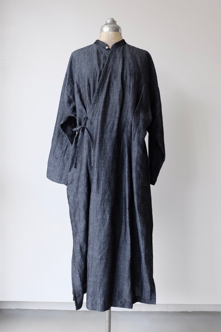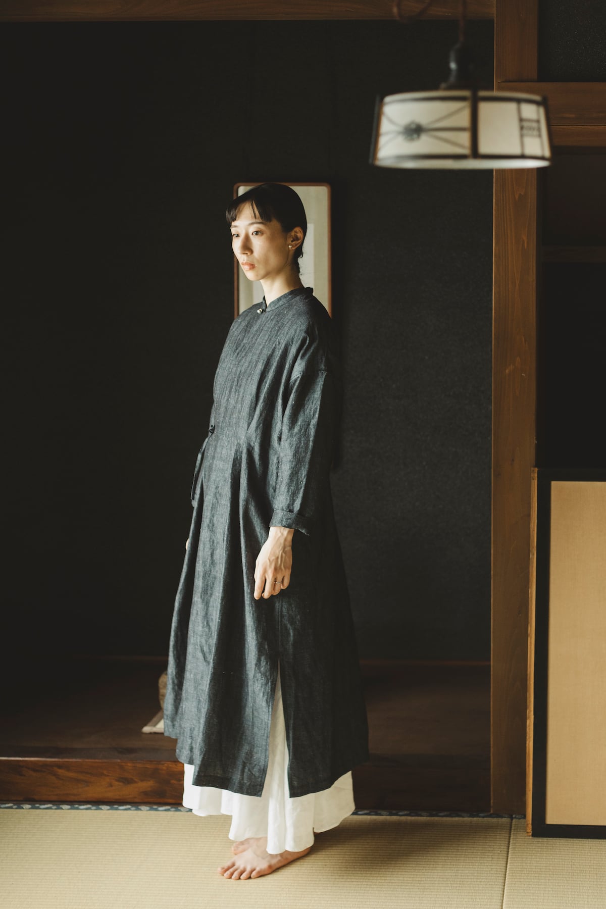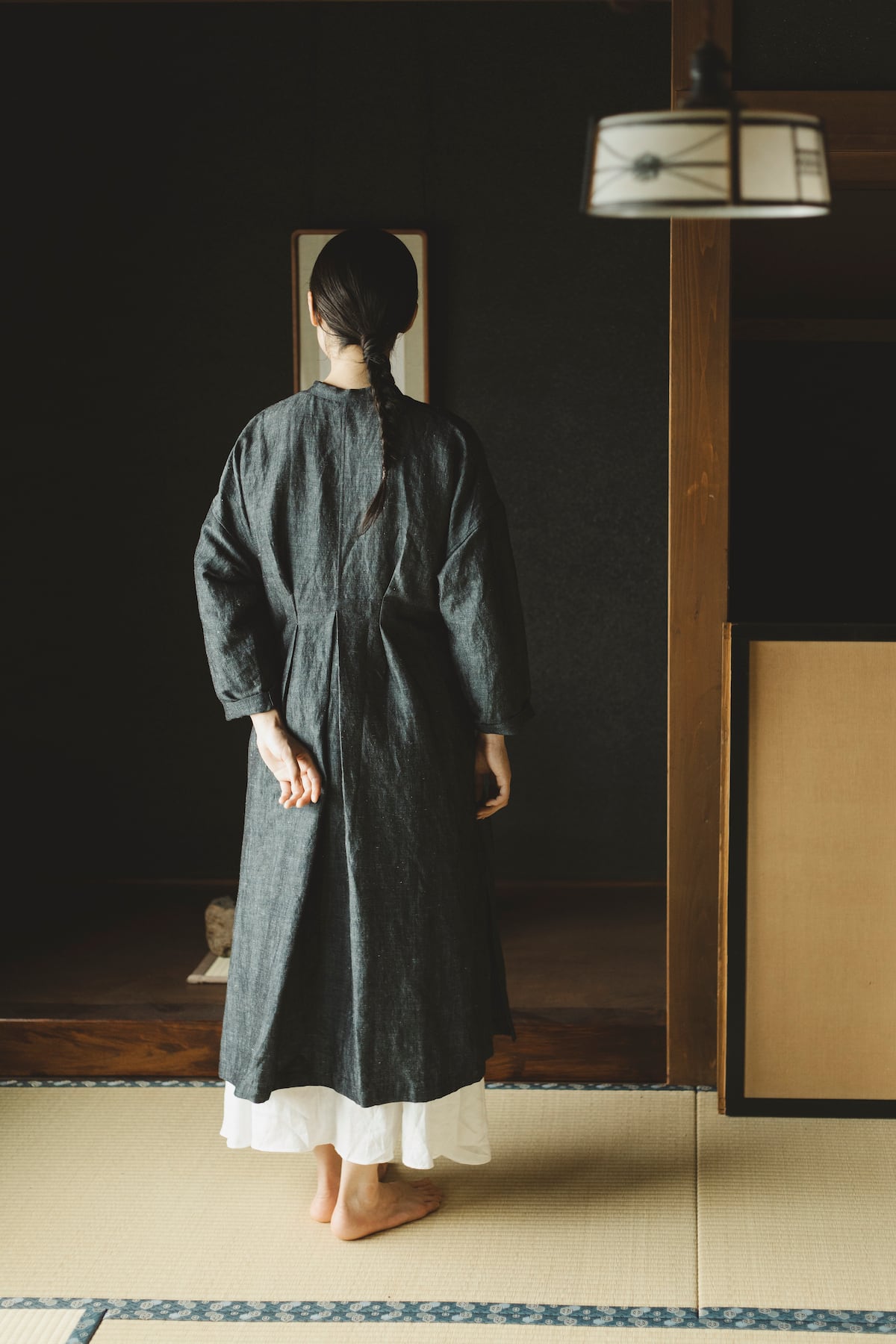 バンブーリネン羽織ドレス(ネイビーグレー) |Bamboo linen haori coat dress (Navy gray)