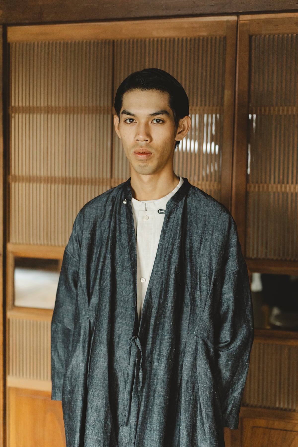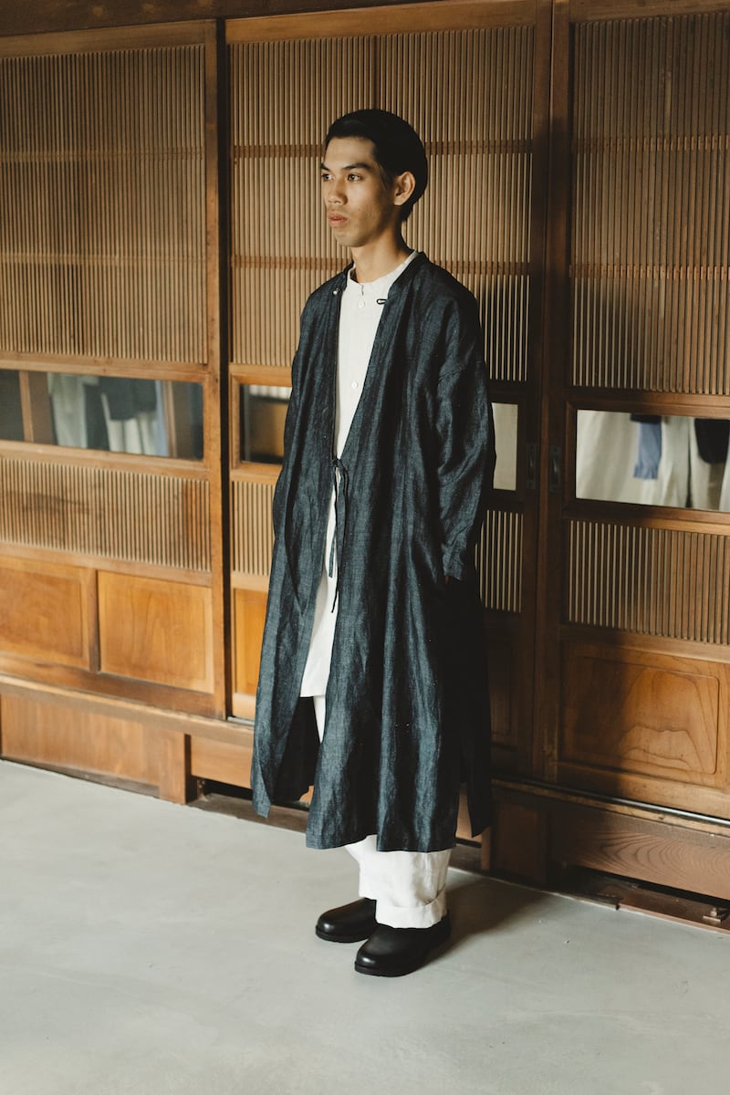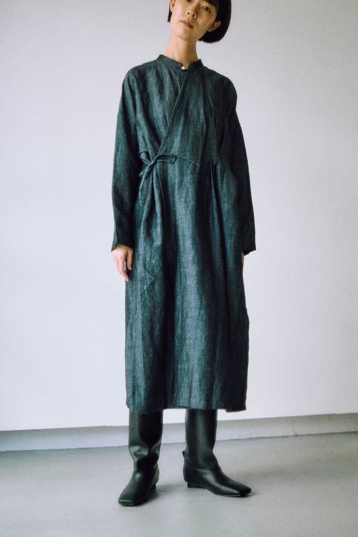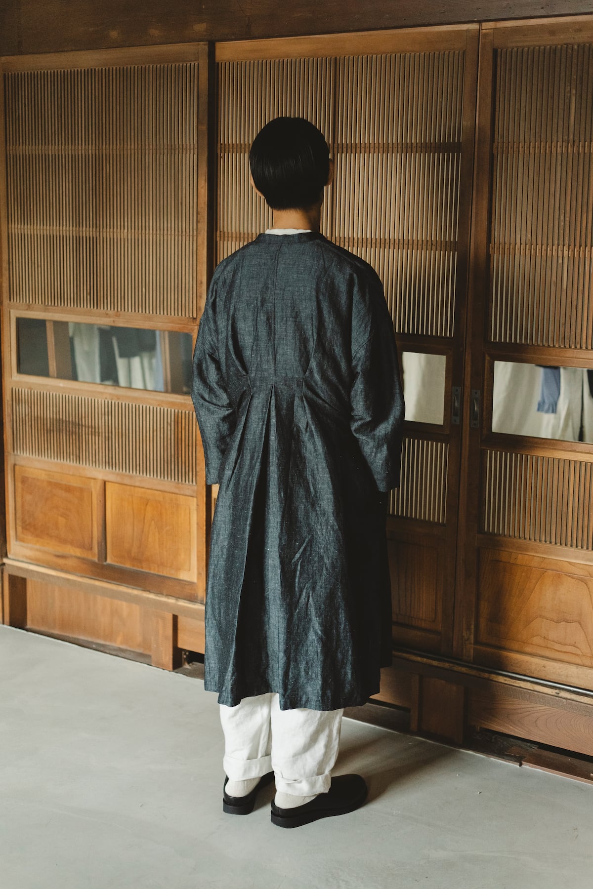 バンブーリネン羽織ドレス(ネイビーグレー) |Bamboo linen haori coat dress (Navy gray)