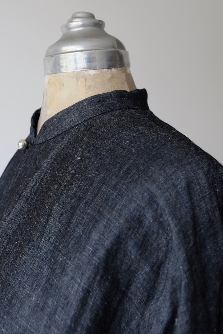 首元に一粒、モン族のシルバー釦を。それをきちんと留めても、前を開けてさらっと羽織るようにも着ていただけます。